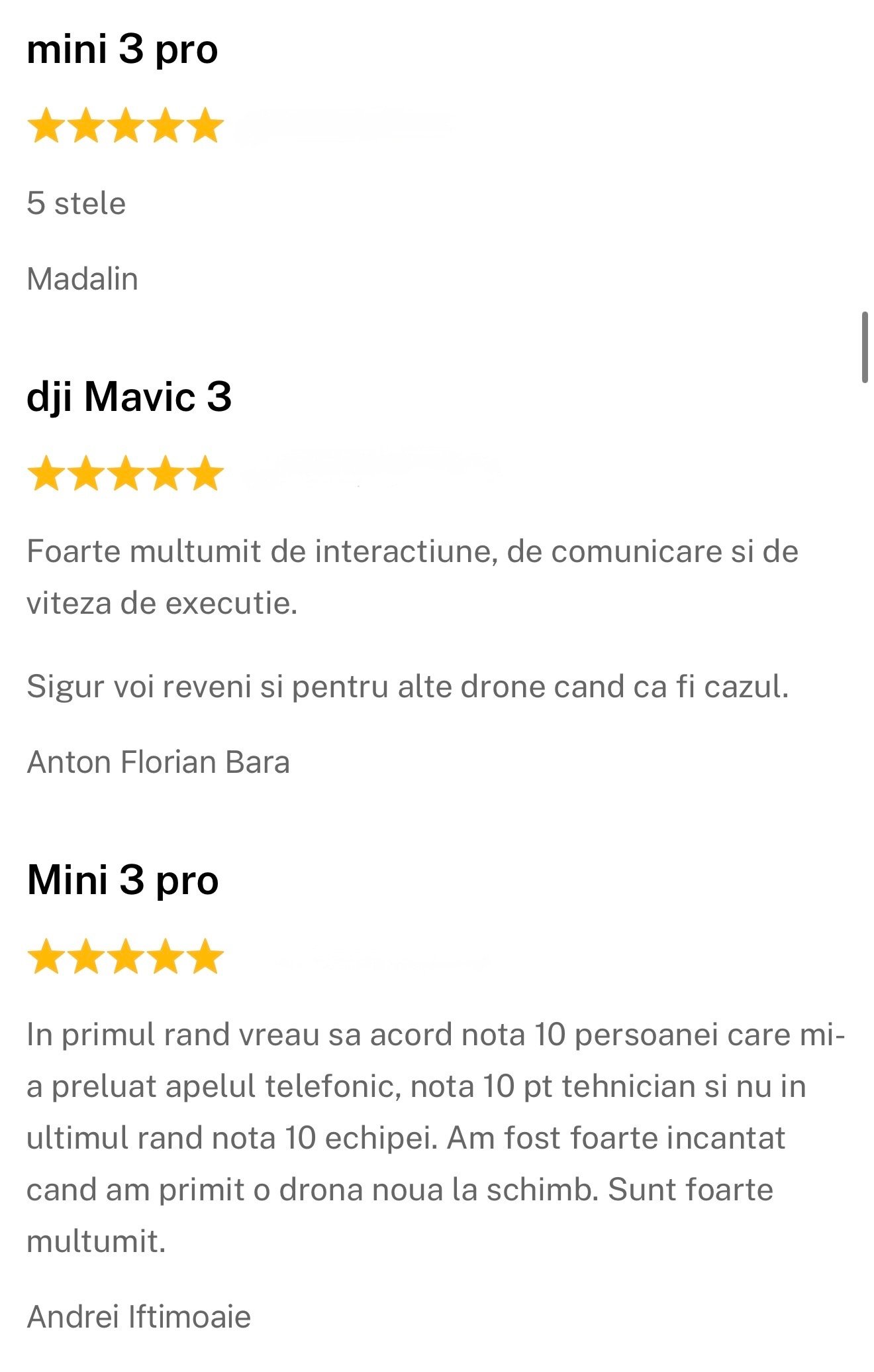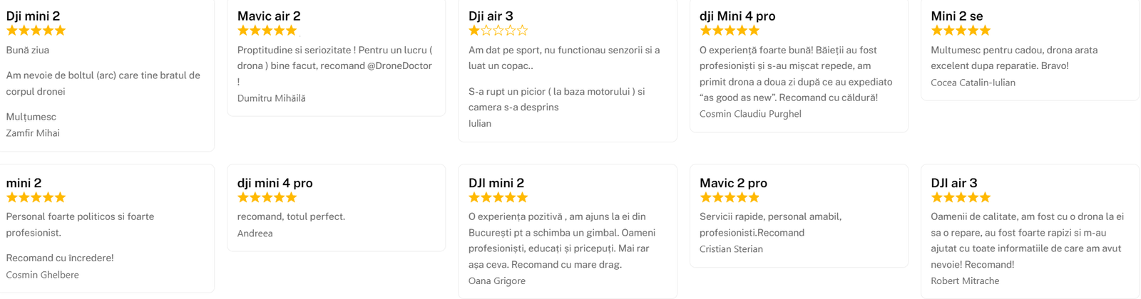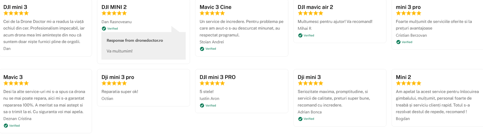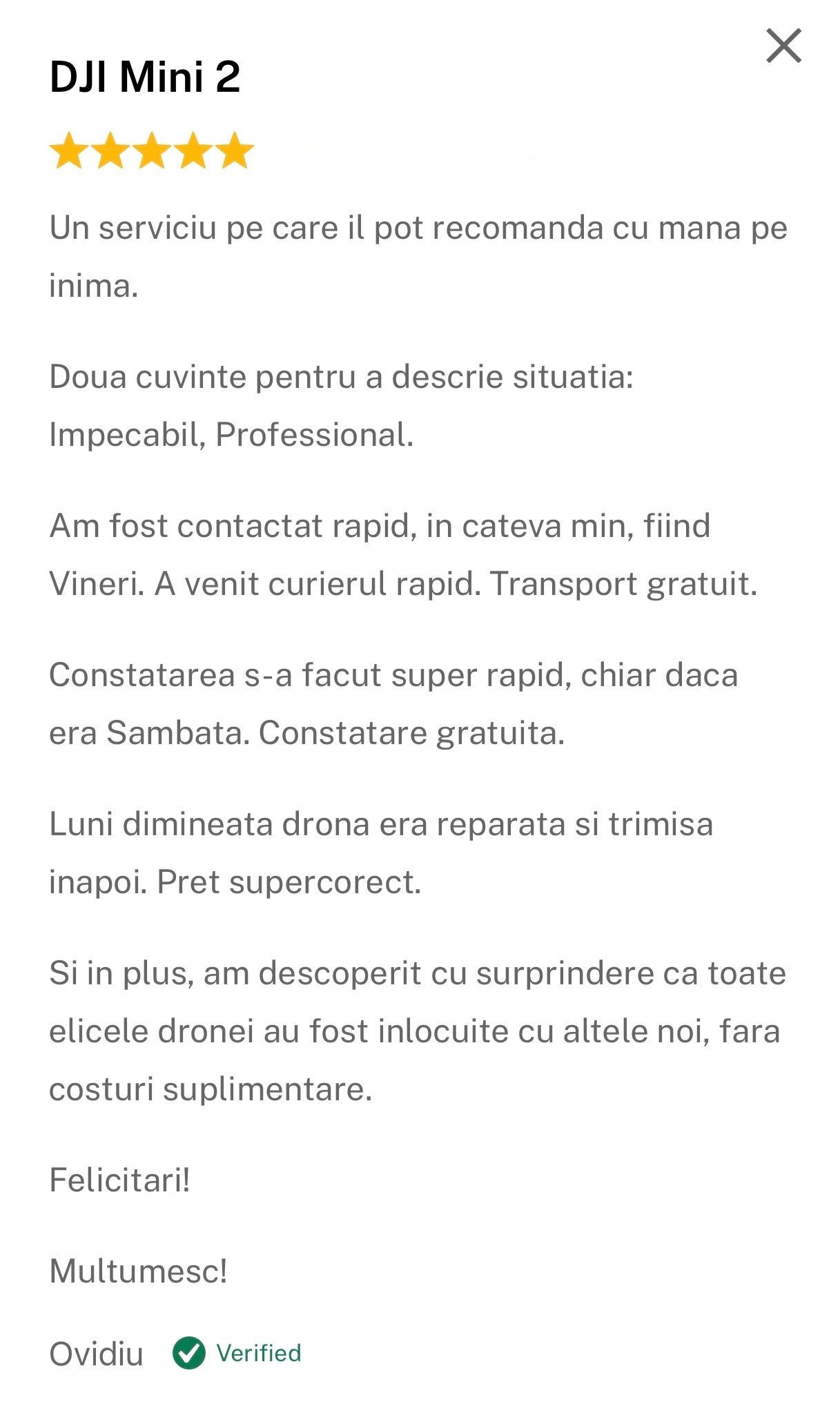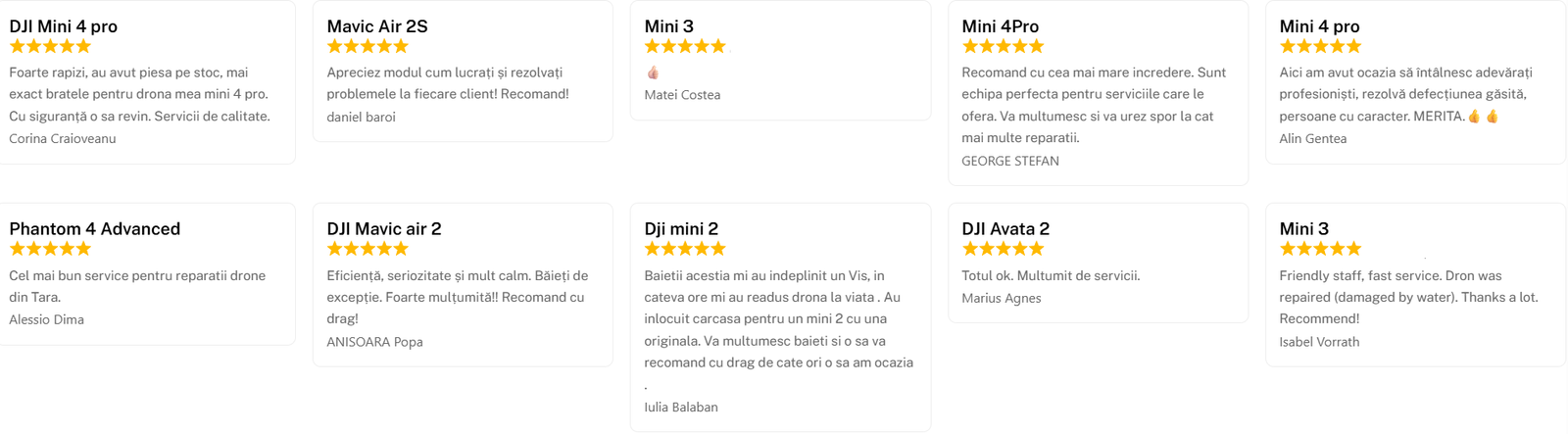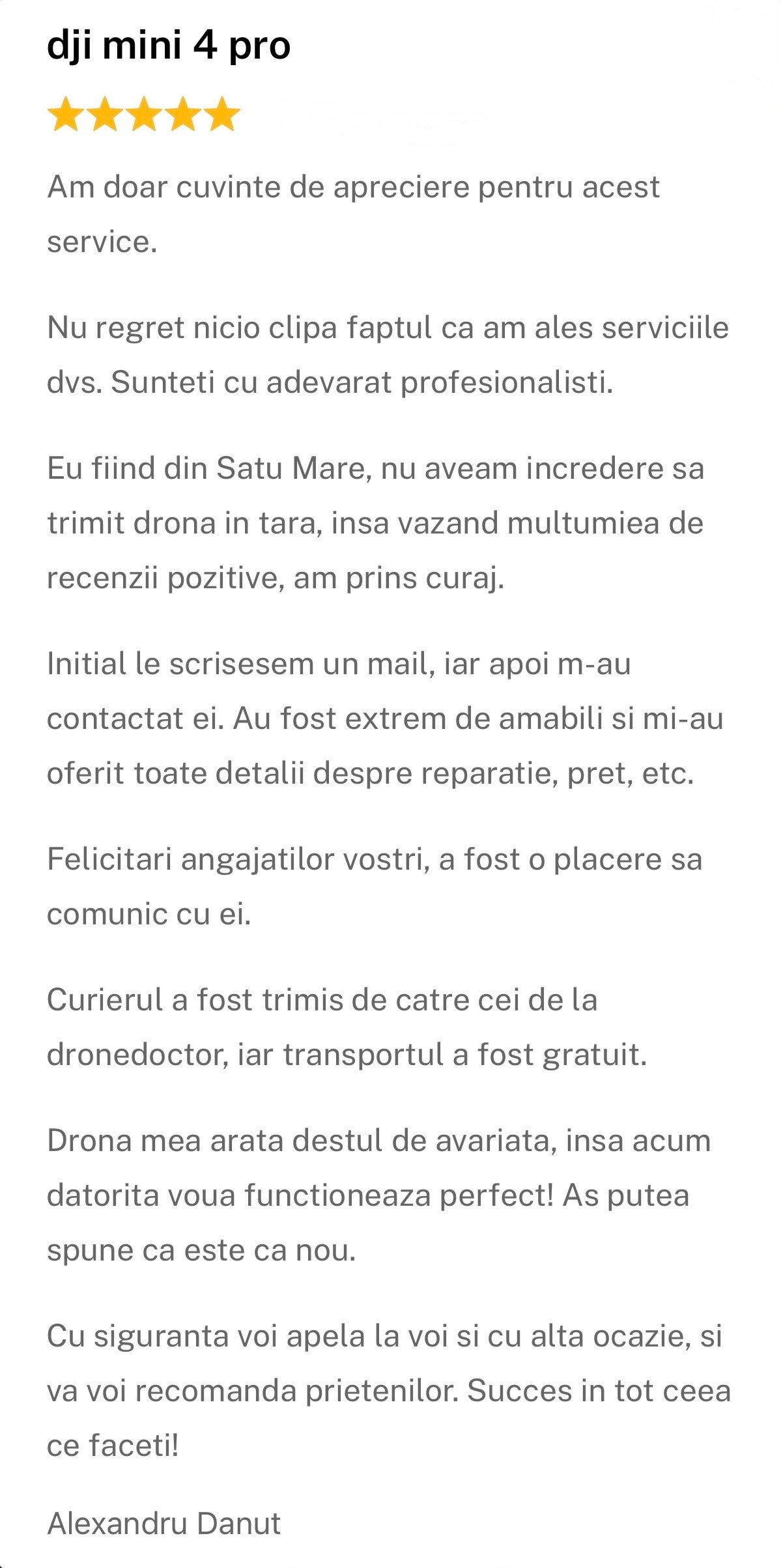 Dacă ne asigurăm că fiecare client este mulțumit de alegerea făcută și de intervenția în service DJI, vom primi recomandări mai departe, iar în acest fel toți avem de câștigat.