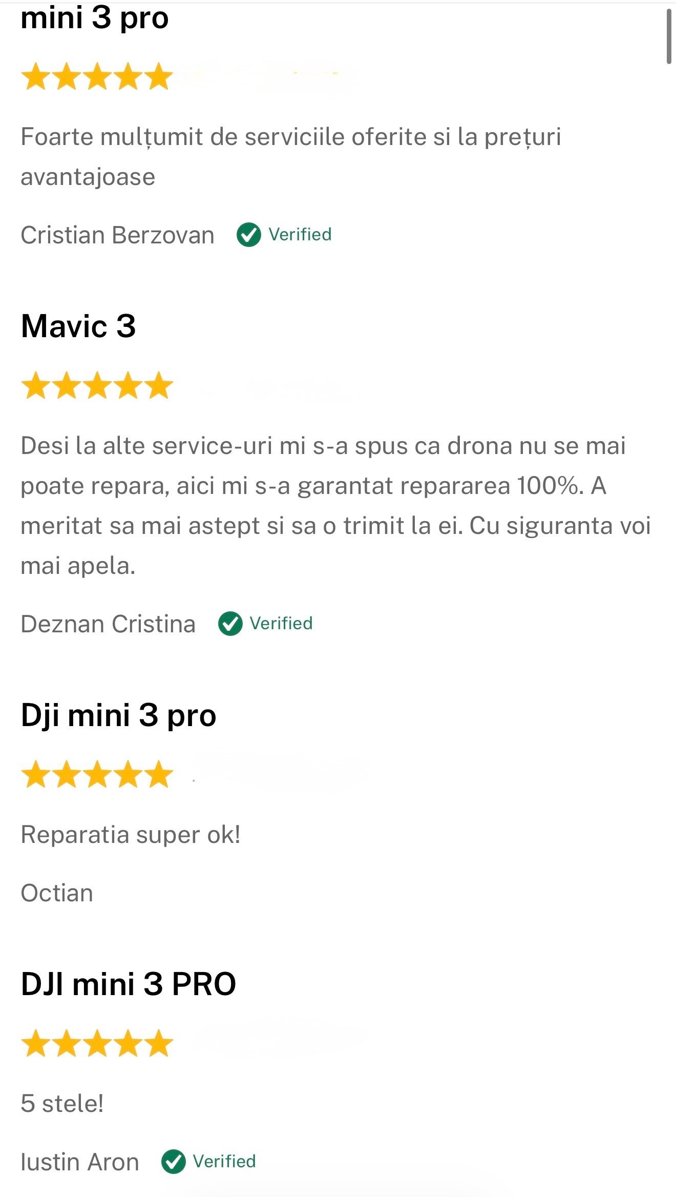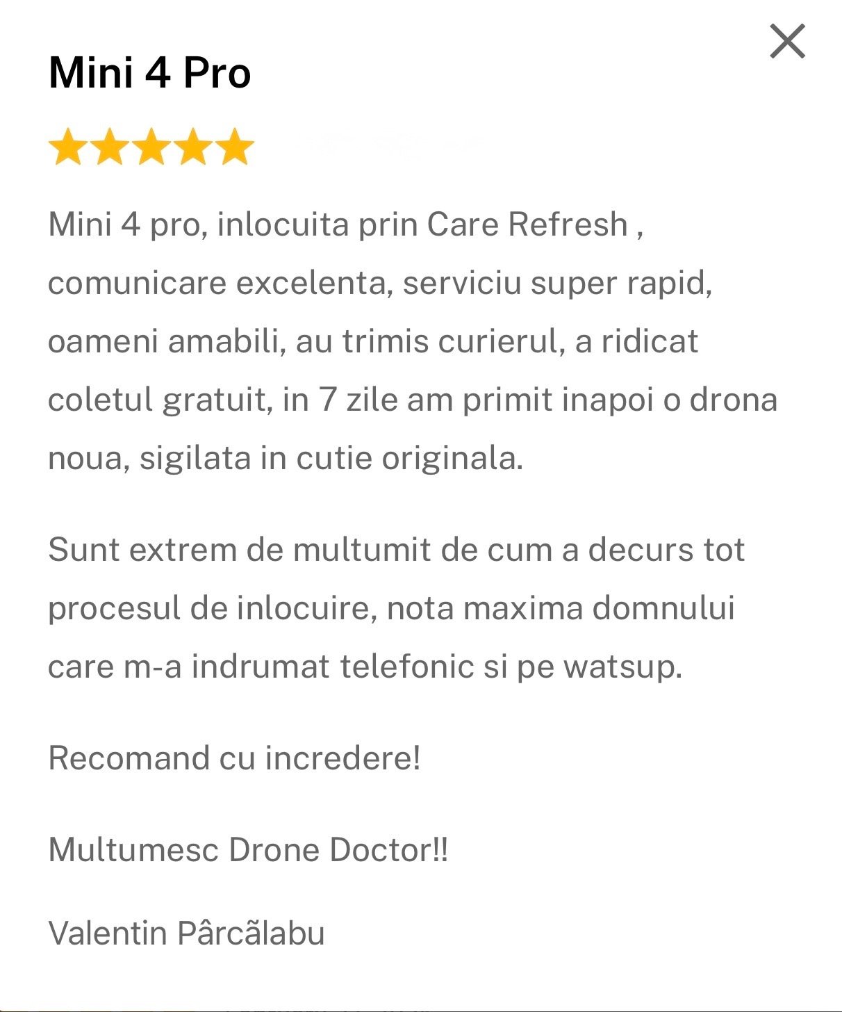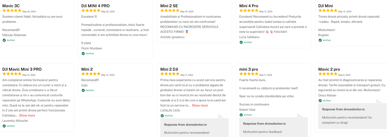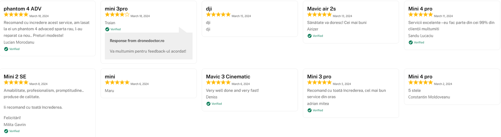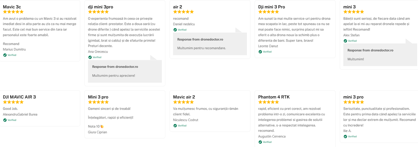 Dacă ne asigurăm că fiecare client este mulțumit de alegerea făcută și de intervenția în service DJI, vom primi recomandări mai departe, iar în acest fel toți avem de câștigat.