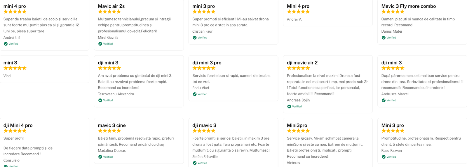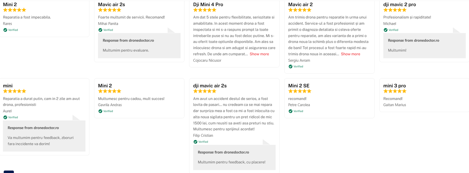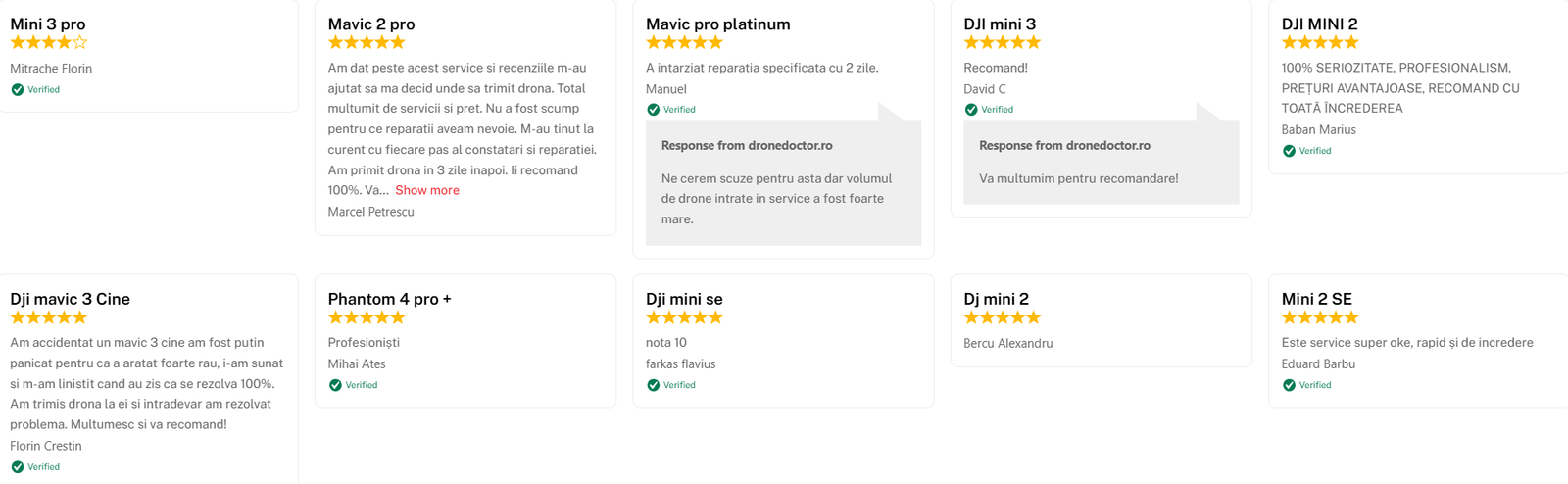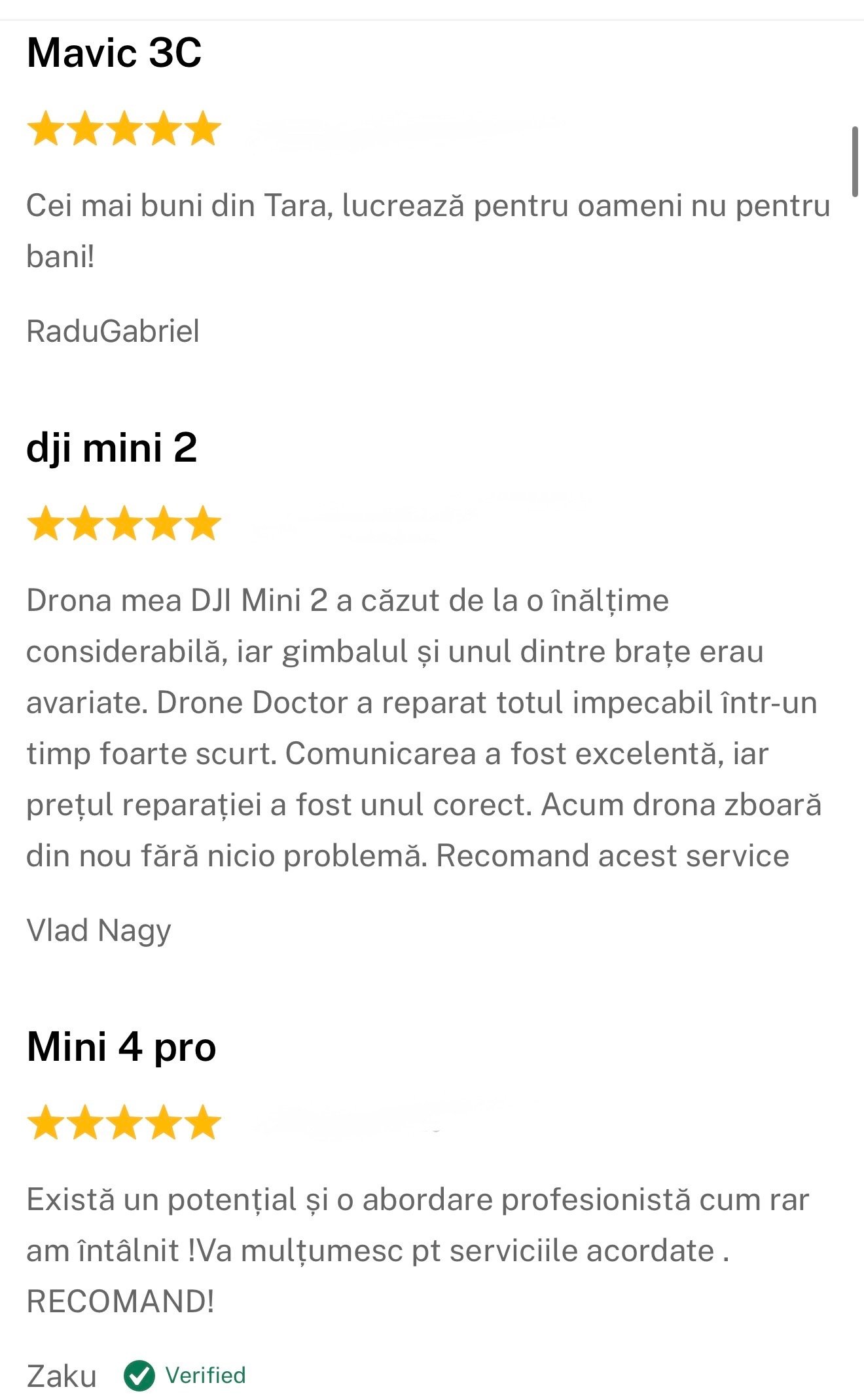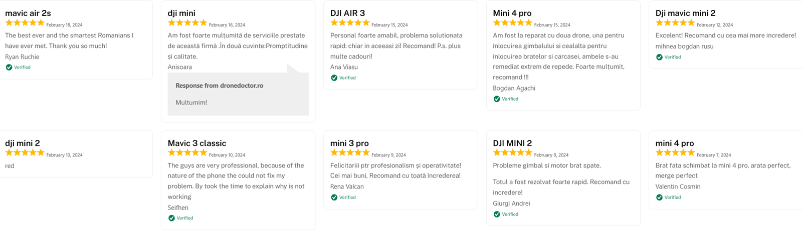 Dacă ne asigurăm că fiecare client este mulțumit de alegerea făcută și de intervenția în service DJI, vom primi recomandări mai departe, iar în acest fel toți avem de câștigat.