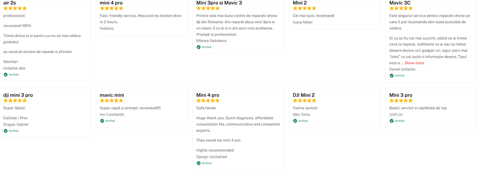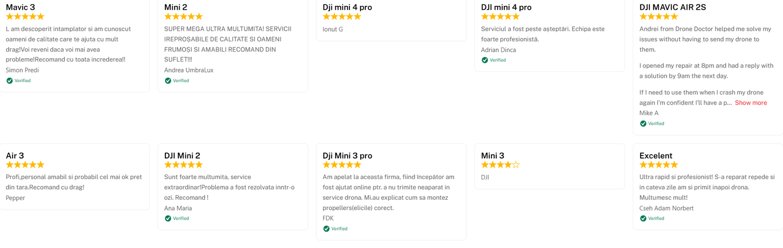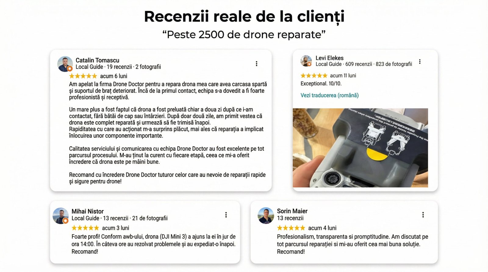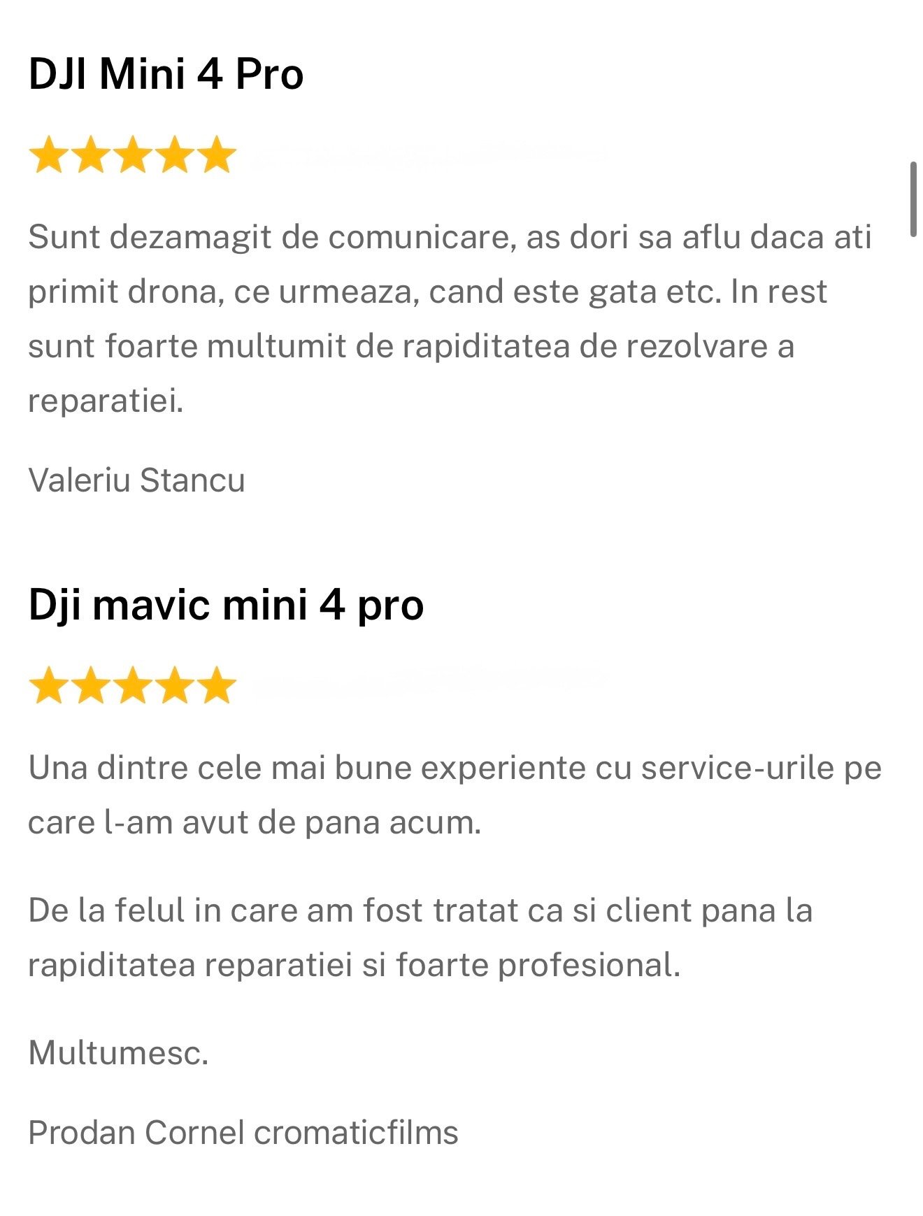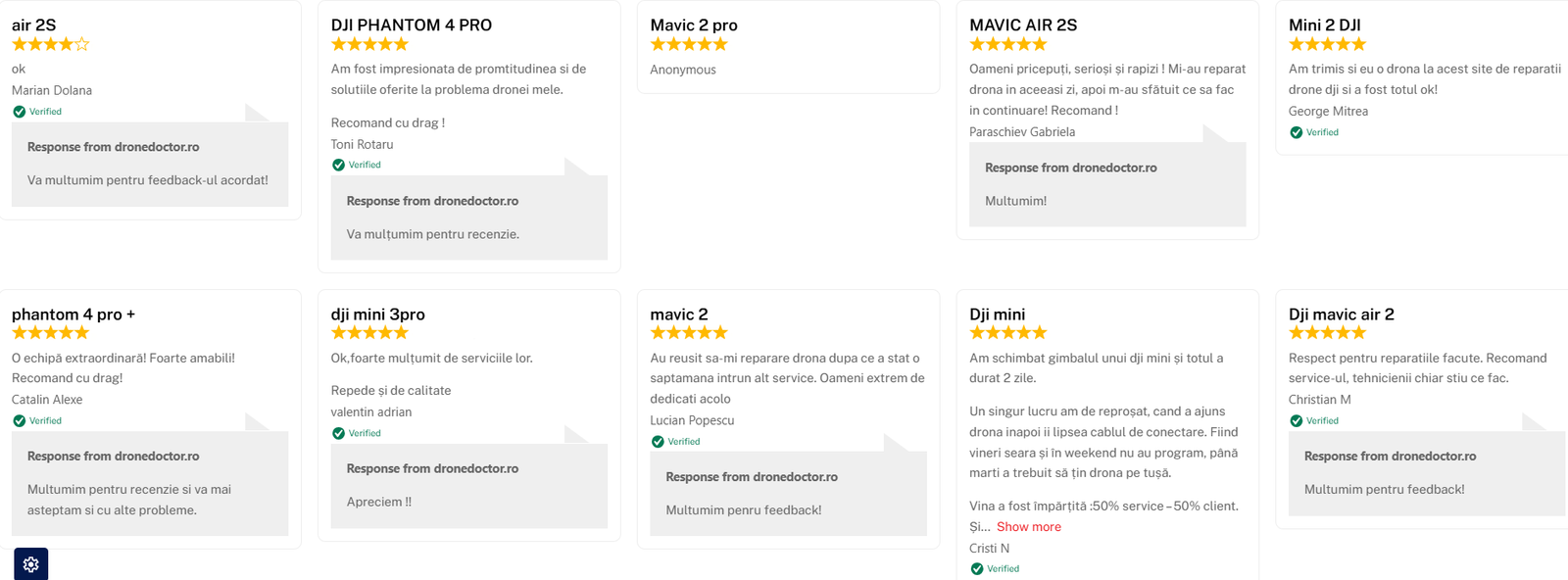 Dacă ne asigurăm că fiecare client este mulțumit de alegerea făcută și de intervenția în service DJI, vom primi recomandări mai departe, iar în acest fel toți avem de câștigat.