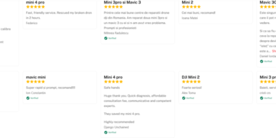 Avem peste 2.500 de drone DJI reparate cu succes, de la intervenții simple până la reparații complexe de placă, cameră sau gimbal.